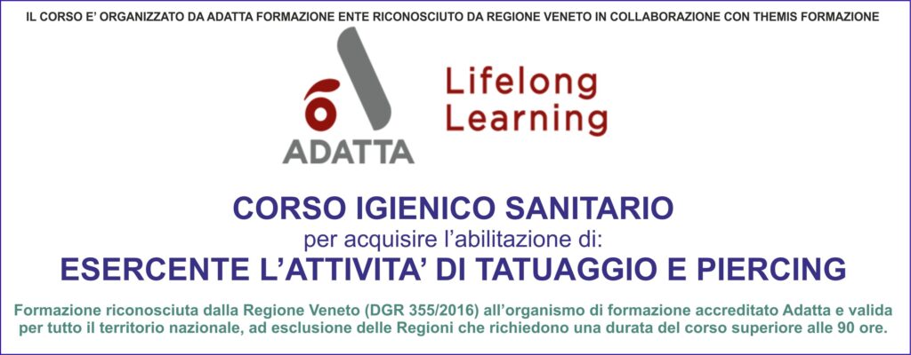 AVVISO PER IL CLIENTE: Il corso Igienico Sanitario è organizzato da ADATTA FORMAZIONE ente accreditato dalla Regione Veneto (DGR 35572016) con la collaborazione e partenariato di THEMIS FORMAZIONE